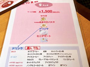 本日のおまかせパスタ、サラダ、ミニデザート、飲み物がついて1,650円(税込)。
